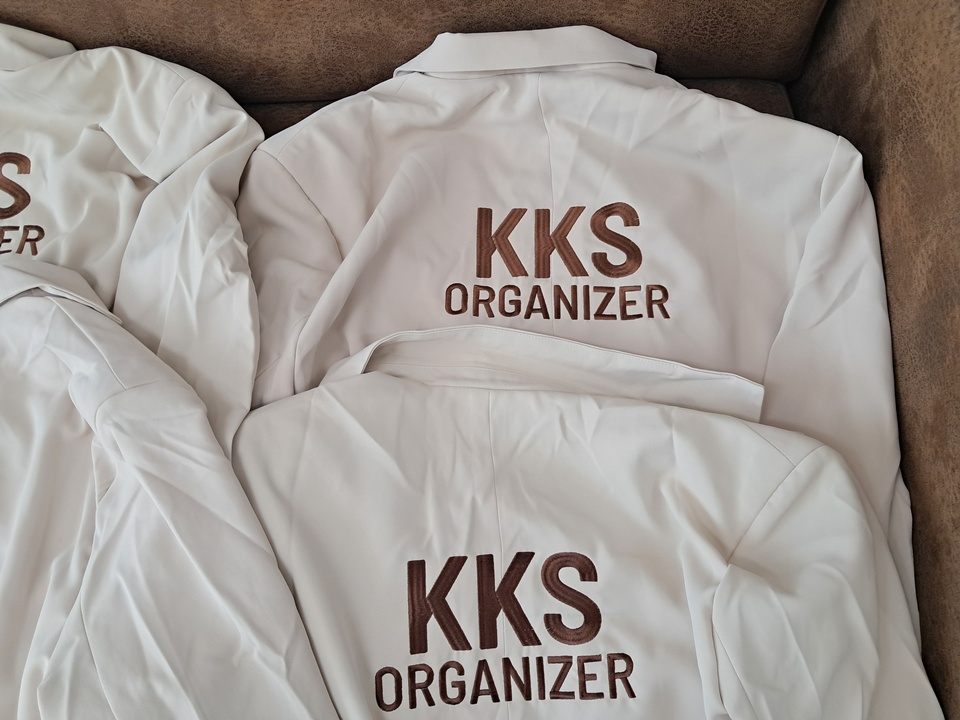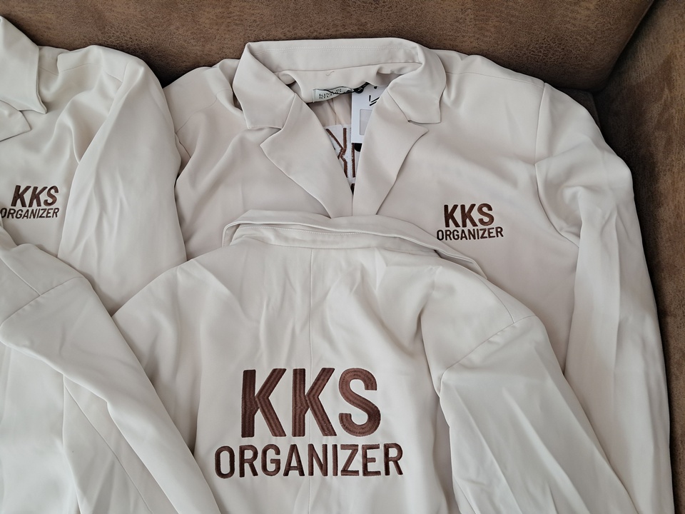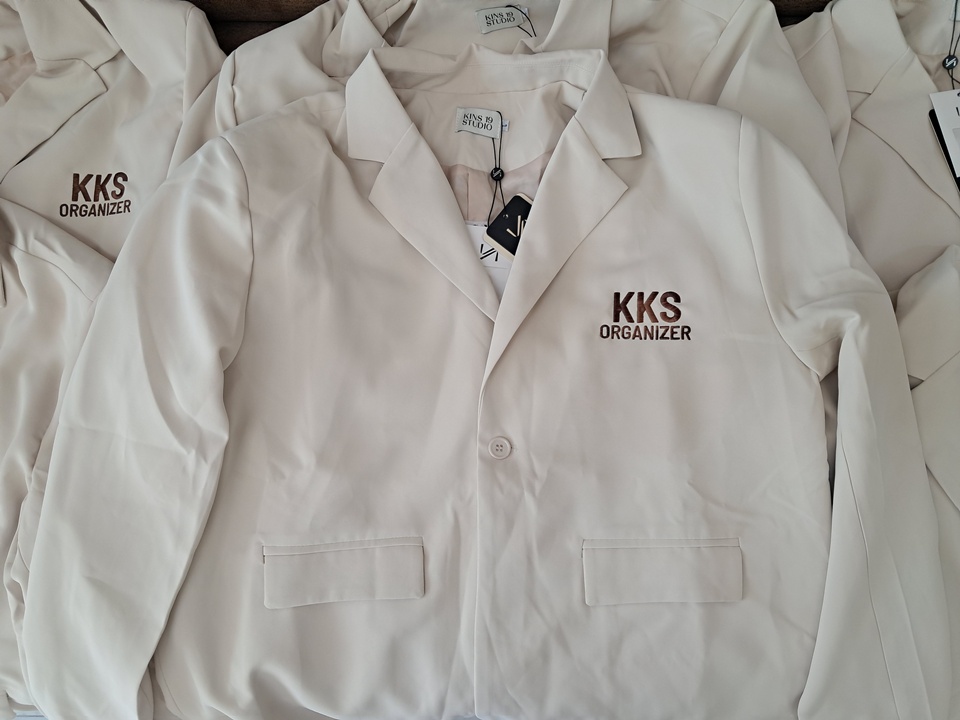 งานปักเสื้อสูทผู้หญิง KINS 19 STUDIO สีครีม ปัก2ตำแหน่ง หน้าอกซ้ายและขนาดใหญ่ด้านหลัง
