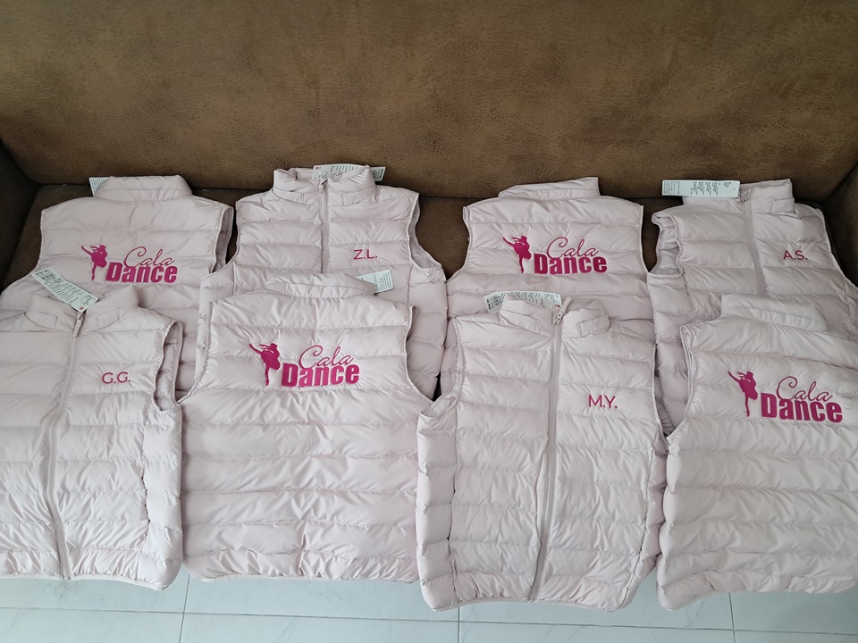 งานปักเสื้อกั๊กกันหนาวขนเป็ด สำหรับโรงเรียนสอนเต้นรำ