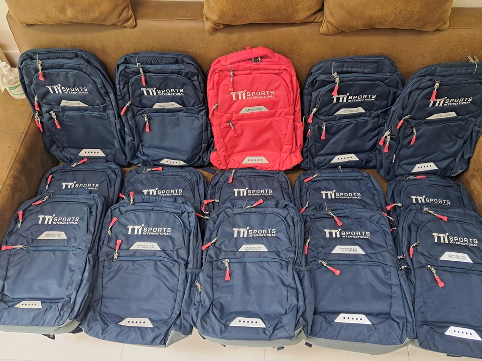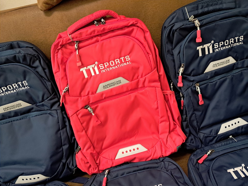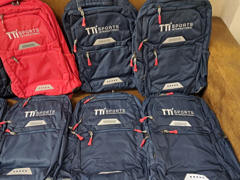งานปักโลโก้องค์กรบนกระเป๋าเป้ ปักกระเป๋าสะพายหลัง จำนวนมาก ยี่ห้อ American Tourister รุ่น BRETT
