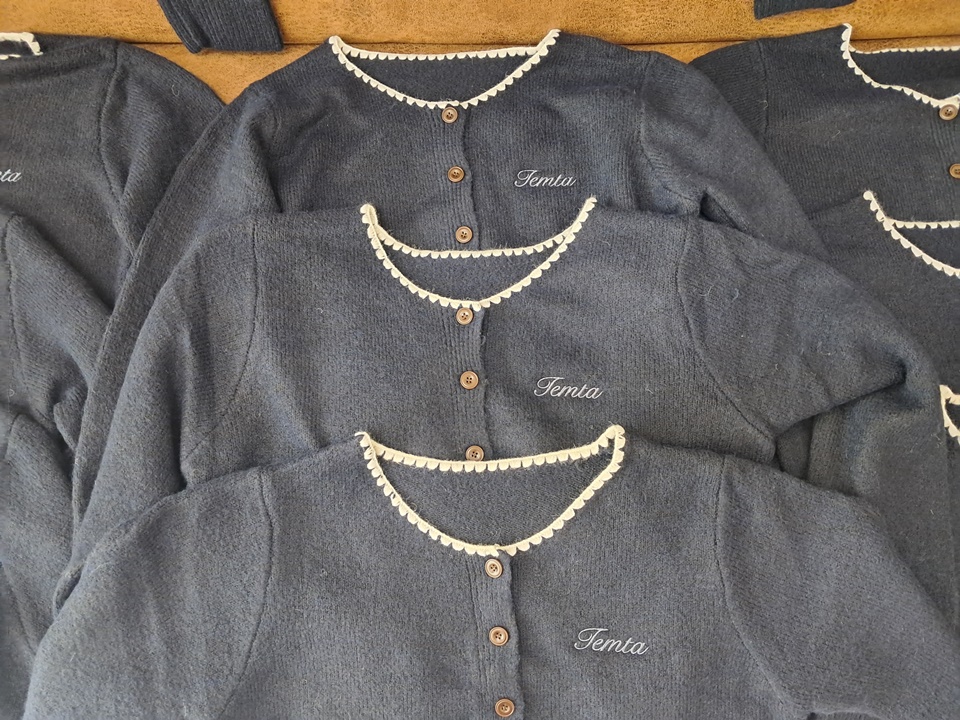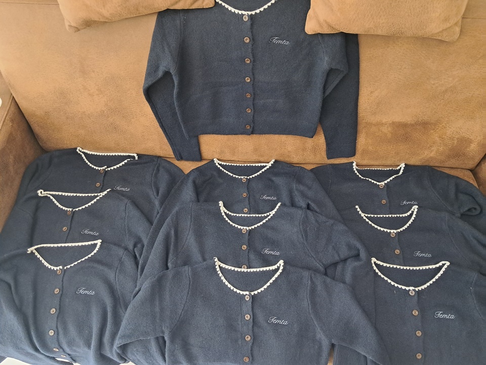 งานปักโลโก้แบรนด์ ปักยี่ห้อบนเสื้อคาร์ดิแกนสำหรับผู้หญิงจำนวนมาก หรูหราดูดีมากจ้า